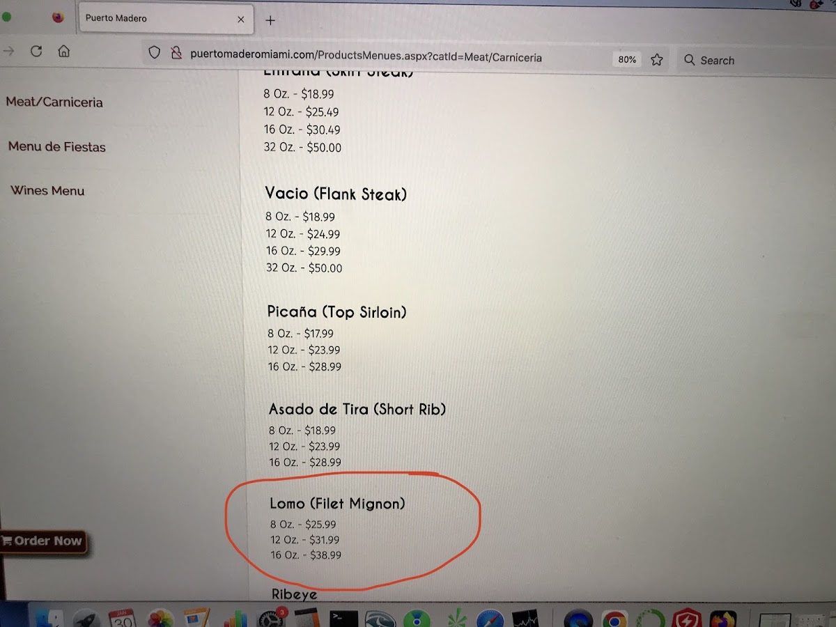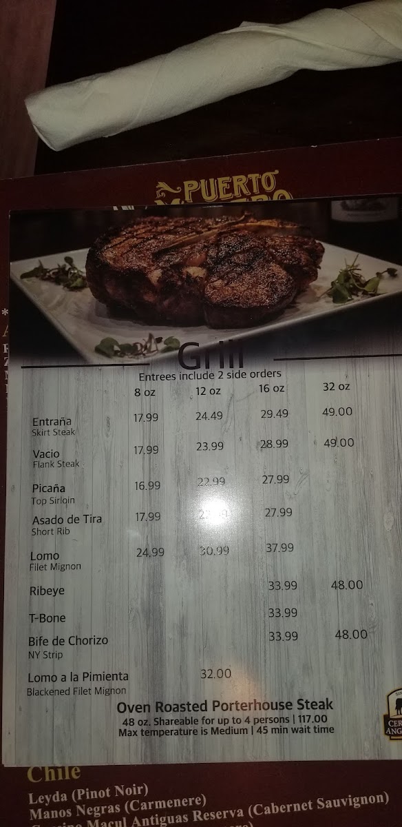 Puerto Madero Miami Menu